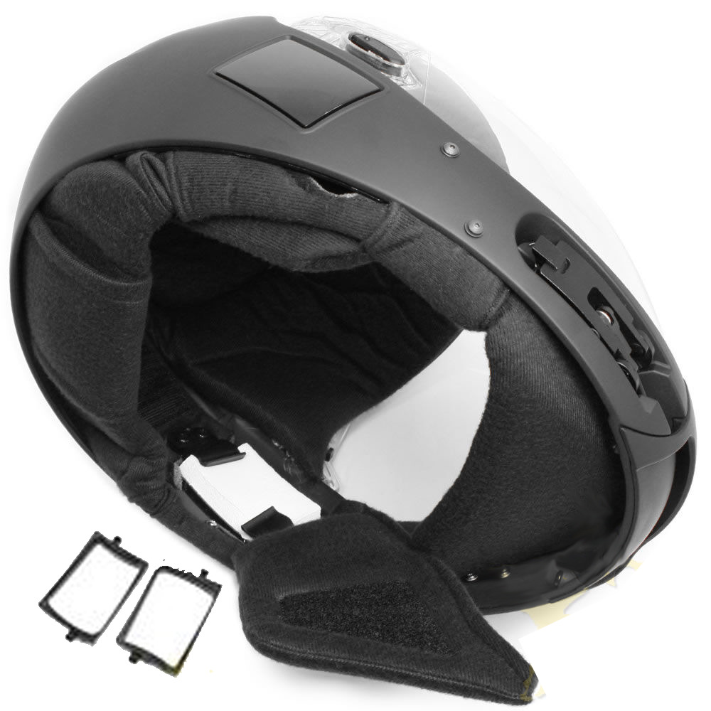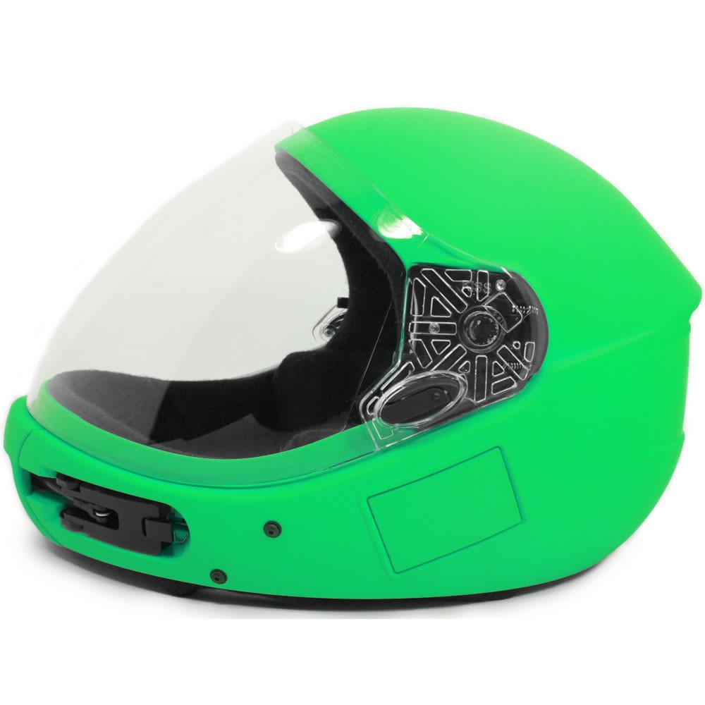 Bringing innovation and precision engineering to full-face helmet design, Square One presents the KISS. This is a multi-discipline, state-of-the-art, high-performance helmet. The KISS features a 2mm thick polycarbonate lens with full mouth exposure, panoramic visibility and Square One’s new patent-pending anti-fog ventilation system. Whether your aerial pleasures find you belly-to-earth or head-down, this unique vent system will greatly reduce fogging in all conditions.