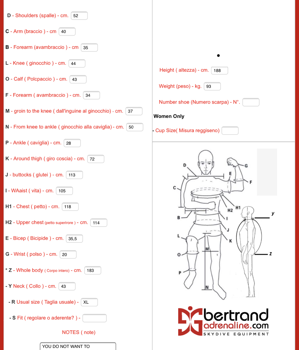 For a person about 188 centimeters tall and maximum weight 95 kg.